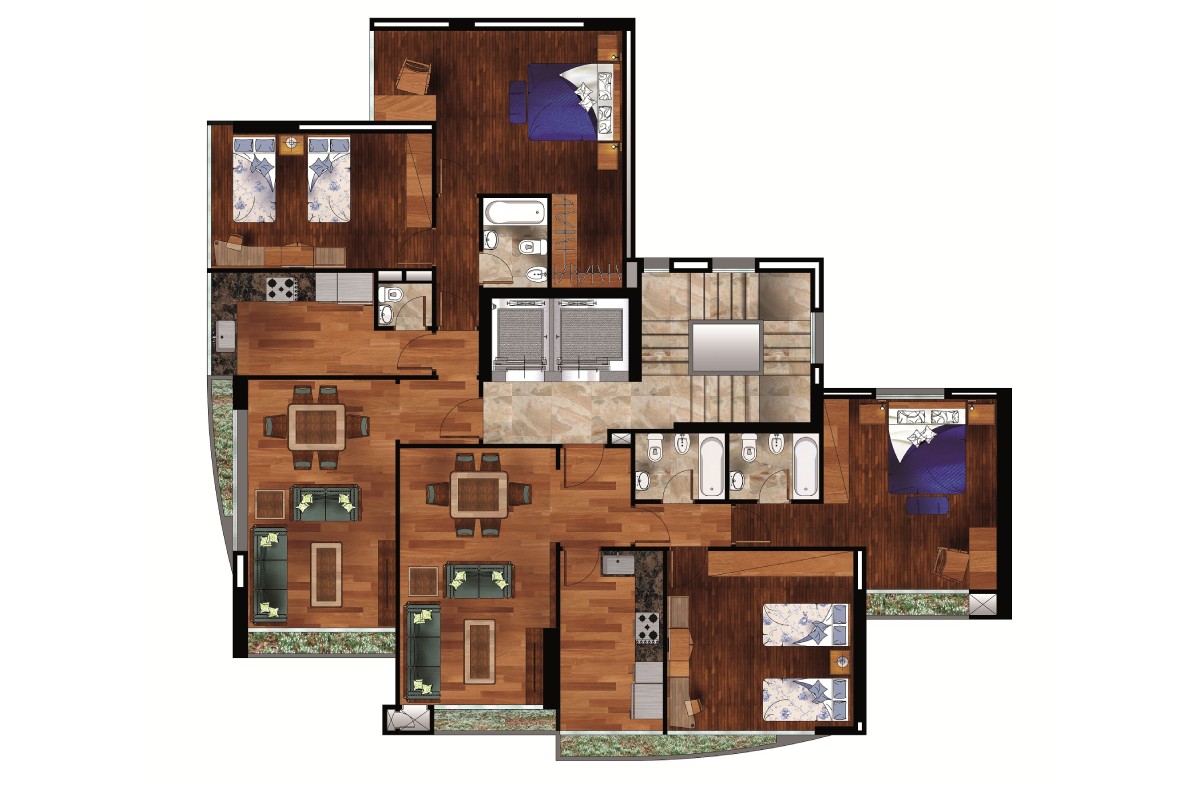 3 basements, ground floor, 12 residential floors, roof terrace.